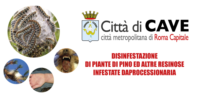 Ai proprietari ed ai detentori a qualsiasi titolo di terreni privati sul territorio del Comune di Cave, nei quali sono presenti piante di Pino, Cedro ed altre Resinose, infestate da processionarie, di procedere alla loro disinfestazione entro il 31/03/2020, periodo nel quale le larve dell’insetto munite di peli urticanti si trovano nei nidi, ed effettuare il taglio e la bruciatura dei nidi.
