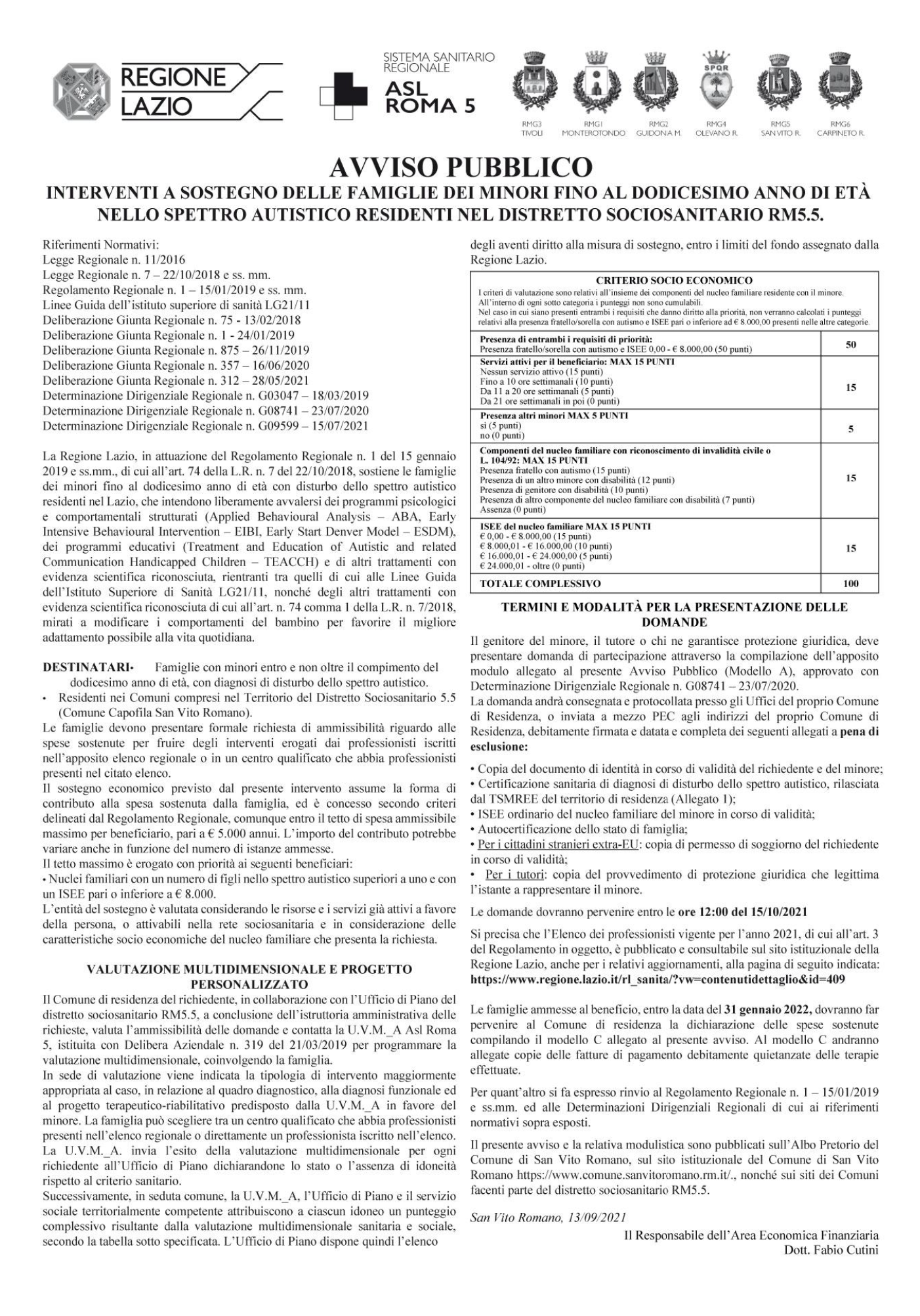 Famiglie con minori entro e non oltre il compimento del dodicesimo anno di età, con diagnosi di disturbo dello spettro autistico.