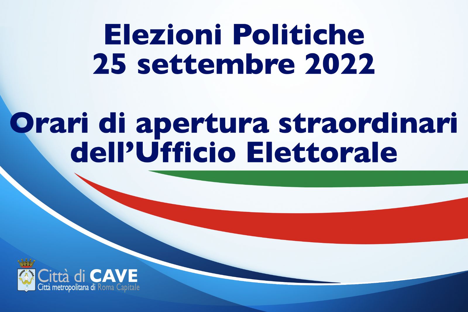 Allo scopo di garantire lil rilascio dei certificati d’iscrizione nelle liste elettorali per la presentazione delle liste di candidati alle Elezioni Politiche del 25 settembre 2022 l’Ufficio Elettorale rimarrà aperto al pubblico nei seguenti giorni ed orari: