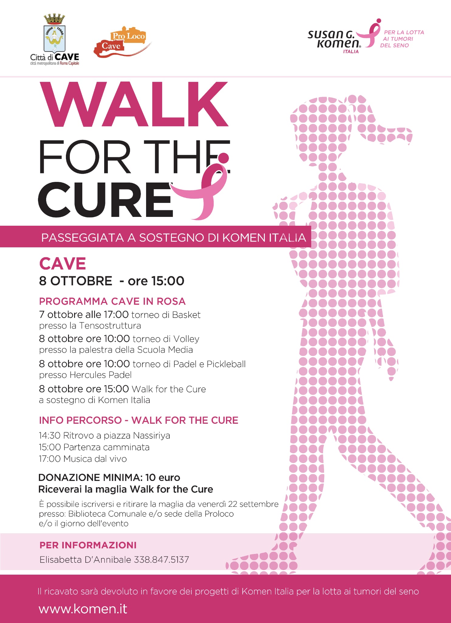 Anche quest’anno a Cave si organizza la “Walk for the Cure” a favore della Susan G. Komen Italia per sostenere la prevenzione e la ricerca sui tumori al seno.